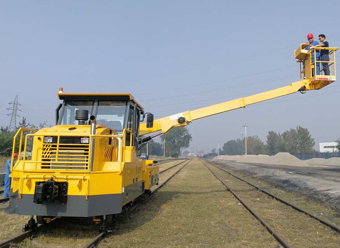 本設(shè)備為實心橡膠輪驅(qū)動型牽引車,其主要是由動力及傳動裝置、制動裝置、液壓裝置、公鐵轉(zhuǎn)換裝置、車鉤、駕駛室、燈光電氣等組成。本設(shè)備動力形式采用柴油動力,在車的前部和后部裝有液壓油缸和導(dǎo)向輪,其中液壓油缸控制導(dǎo)向輪的升降。當(dāng)牽引車在鐵軌上行駛時液壓油缸降下,導(dǎo)向輪與鐵軌接觸,并起到導(dǎo)向作用,牽引車在膠輪的的驅(qū)動下行駛在軌道上。駕駛室全景視窗,人機化操控設(shè)計,配置兩個副駕駛座位,整車一般可使用10年以上、可不需要專用車庫,不占用作業(yè)場地和鐵路線。